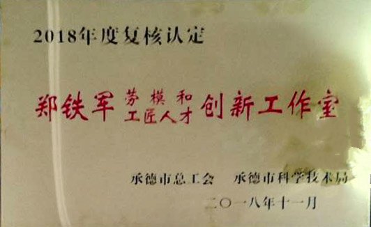 經承德市總工會、承德市科學技術局2018年復核認定興隆縣鄭氏砂藝文化有限公司“鄭鐵軍勞模和工匠人才創新工作室