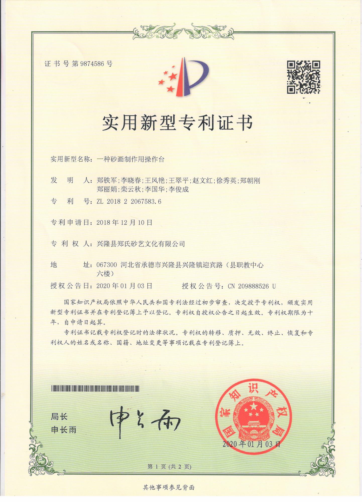 自鄭氏砂藝研究所成立以來,經過研發人員的不懈鉆研和努力,已經陸續研發和申報了9項擁有自主知識產權的實用新型專利,目前為止9項專利全部獲得國家知識產權局的認定。近年來,公司根據自身的生產需求,積極成立了鄭氏砂藝研究所并獲得省工業和信息化廳批準,在研發過程中,公司先后投入數十萬元,通過研發破解了生產過程中的技術難題,9項自主研發專利的成功也標志著鄭氏砂藝研究所逐步走向成熟。
