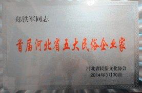 總經理鄭鐵軍被評為《首屆河北省五大民俗企業家 》