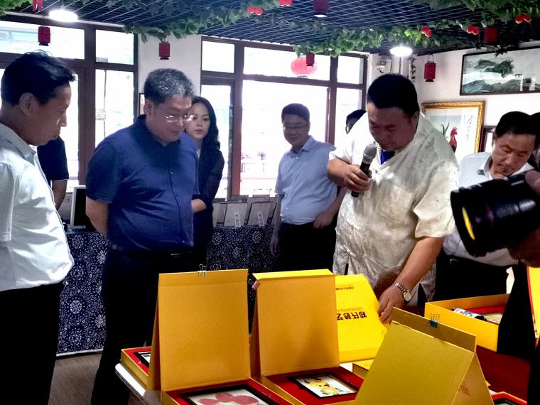 宋文新部長一行調研了鄭氏砂藝在“非遺”文化傳承發展和“非遺+扶貧+旅游”方面的工作內容,鄭鐵軍董事長向宋文新一行匯報了鄭氏砂藝在傳承發展上取得的工作成績和社會影響,以及鄭氏砂藝通過開展“非遺+扶貧+旅游”的幫扶模式,在縣內數個貧困村進行非遺文化項目扶貧所取得的良好成果。通過考察調研,宋文新部長對鄭氏砂藝發展和獨具特色的砂畫藝術給予了高度評價,肯定了鄭氏砂藝在非遺文化項目扶貧方面的創新扶貧思路,并鼓勵要繼續為傳承和弘揚中華民族優秀傳統文化貢獻力量。