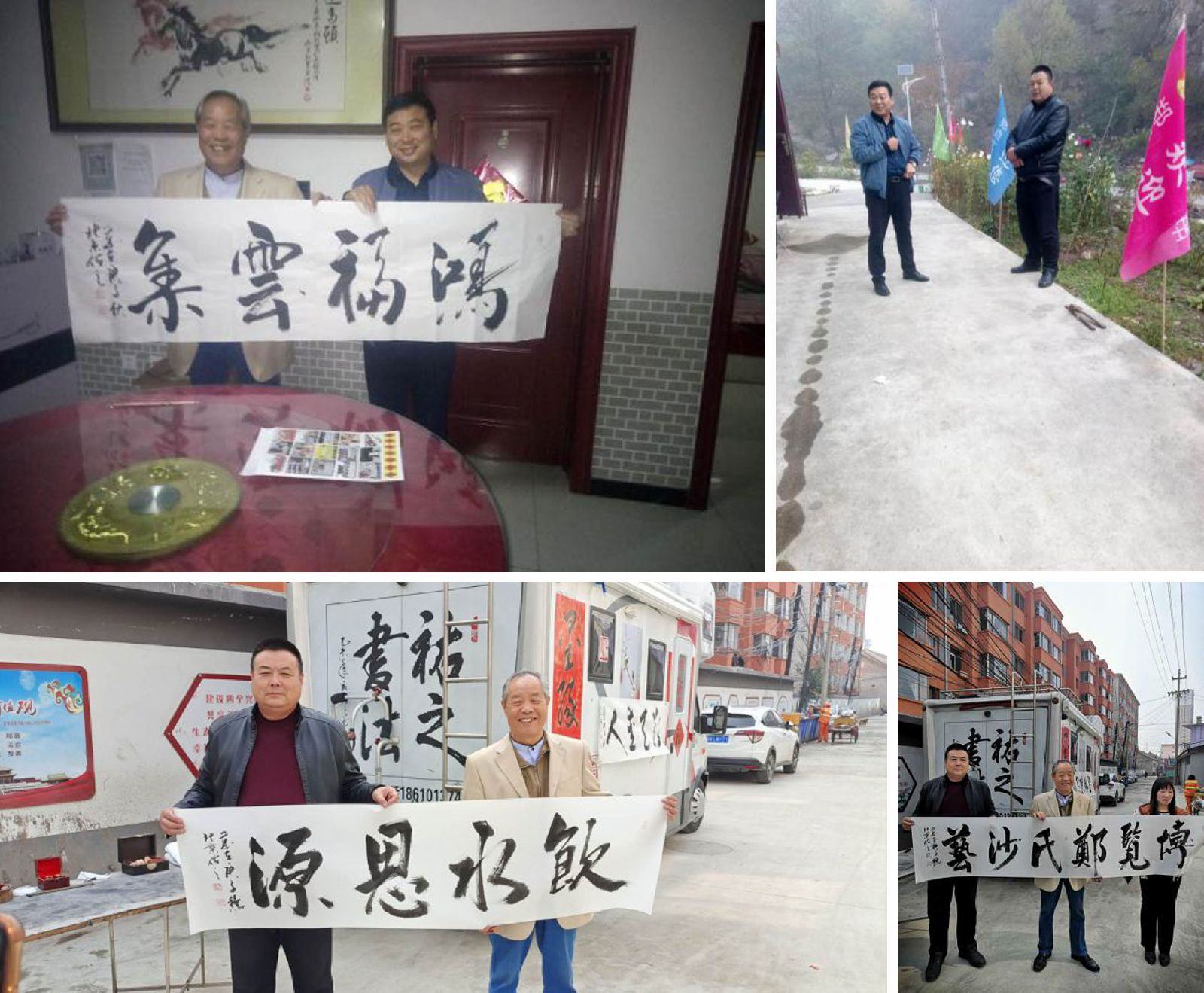 10月9日。副縣長周慶耕(掛職)來到鄭垚文旅山莊開展扶貧調研。并親切接見了前來我縣寫生觀光的北京市書法家協會會員劉佑之老先生。劉老是一位京畿德高望重的老書法藝術家,退休后,立志走遍全國400個縣,處處留下行云流水般的詩情。在鄭氏砂藝文化有限公司所屬“鄭垚文旅山莊”,文旅山莊題詞,并為周縣長題寫了《鴻福云集》,充分展現了老藝術家的風采。山莊的山、山莊的水,山莊的飲食香又美,令劉老和隨行客人流連忘返。隨后在鄭氏砂藝文化有限公司董事長鄭鐵軍陪同下,劉老興致勃勃地來到鄭氏砂藝興隆展廳仔細觀賞了美輪美奐的砂藝展品。精致的畫面、靈巧的工藝、獨特的匠心,令老人家贊不絕口。劉老欣然提筆為鄭氏砂藝文化有限公司題寫了“博覽鄭氏砂藝”,“飲水思源”,為公司工會題寫了“博學篤志”。