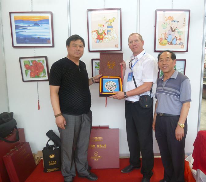 由中國科技部、國家知識產權局、中國科學院、中國工程院、內蒙古自治區人民政府、俄羅斯后貝加爾邊疆區政府、布里亞特共和國政府和蒙古國教育科學部共同主辦,為期3天的第十屆中國(滿洲里)北方國際科技博覽會于2013年7月4日在滿洲里市國際會展中心隆重開幕。為闖國際市場、展砂藝風采,興隆縣鄭氏砂藝在縣文廣局長鄧久國、副局長武立英的帶領下,公司經理鄭鐵軍、副總經理方永成攜帶鄭氏砂藝作品10多幅參加了本次博覽會。博覽會中,與會人員廣泛接觸各界人士,相互交流信息,溝通感情、加強合作、共謀發展,收到了非常好的經濟效益和社會效益。公司與俄羅斯客商伊萬諾夫.尤里阿納托里耶維奇、滿洲里市最大的國際旅游禮品經銷商喀秋莎實業有限公司達成了長期購銷協議,實現了向北發展、走進歐洲的經銷戰略。