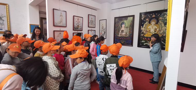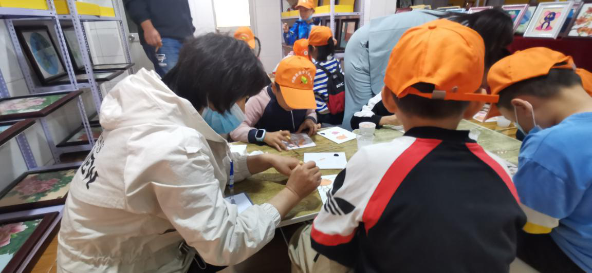 參加此次研學(xué)活動的師生共計180余人,小朋友們在我公司講解員的帶領(lǐng)下興致勃勃的參觀了鄭氏砂畫,了解了鄭氏砂藝“非遺”文化的發(fā)展歷程、工藝技術(shù)和傳承意義,觀看了砂畫制作解析視頻,最后進(jìn)行了砂畫的實際操作。