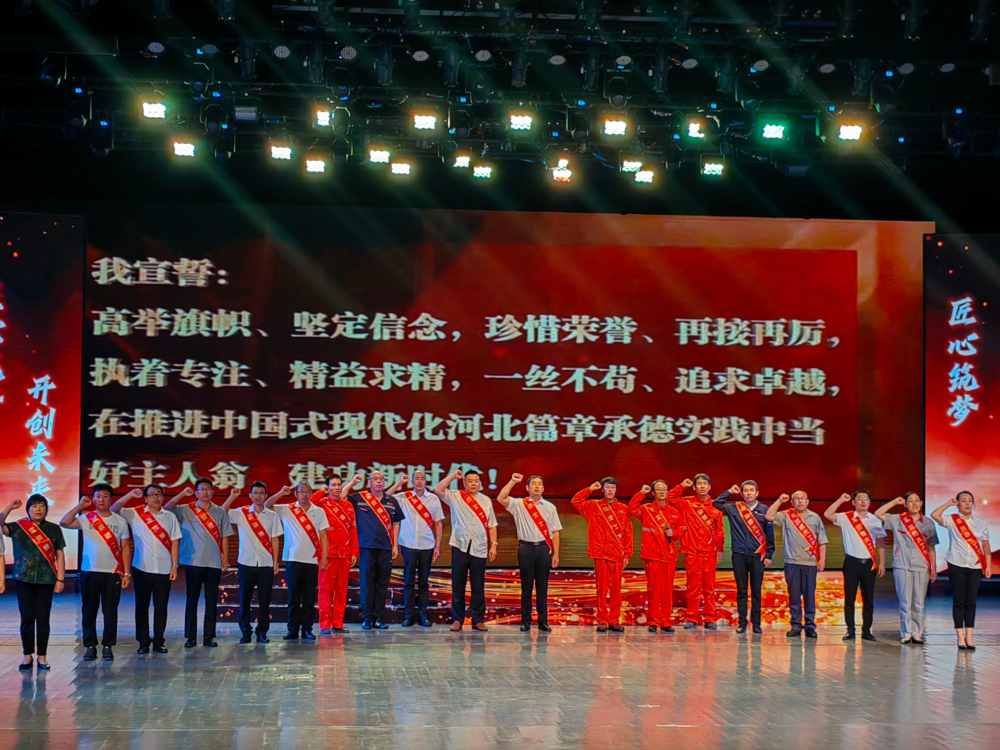 7月6日上午,2023年河北工匠、承德大工匠、承德工匠年度人物發(fā)布儀式在承德大劇院舉行,承德市委副書(shū)記蔣文冬,承德市委常委、宣傳部部長(zhǎng)趙青英,承德市人大常委會(huì)副主任郭士剛,承德市人民政府副市長(zhǎng)甄毓敏等相關(guān)領(lǐng)導(dǎo)出席了此次活動(dòng),并與工匠年度人物榮譽(yù)獲得者進(jìn)行合影留念。鄭氏砂藝(畫)第五代非遺傳承人鄭鐵軍榮獲“2023年河北工匠年度人物”榮譽(yù)稱號(hào)。