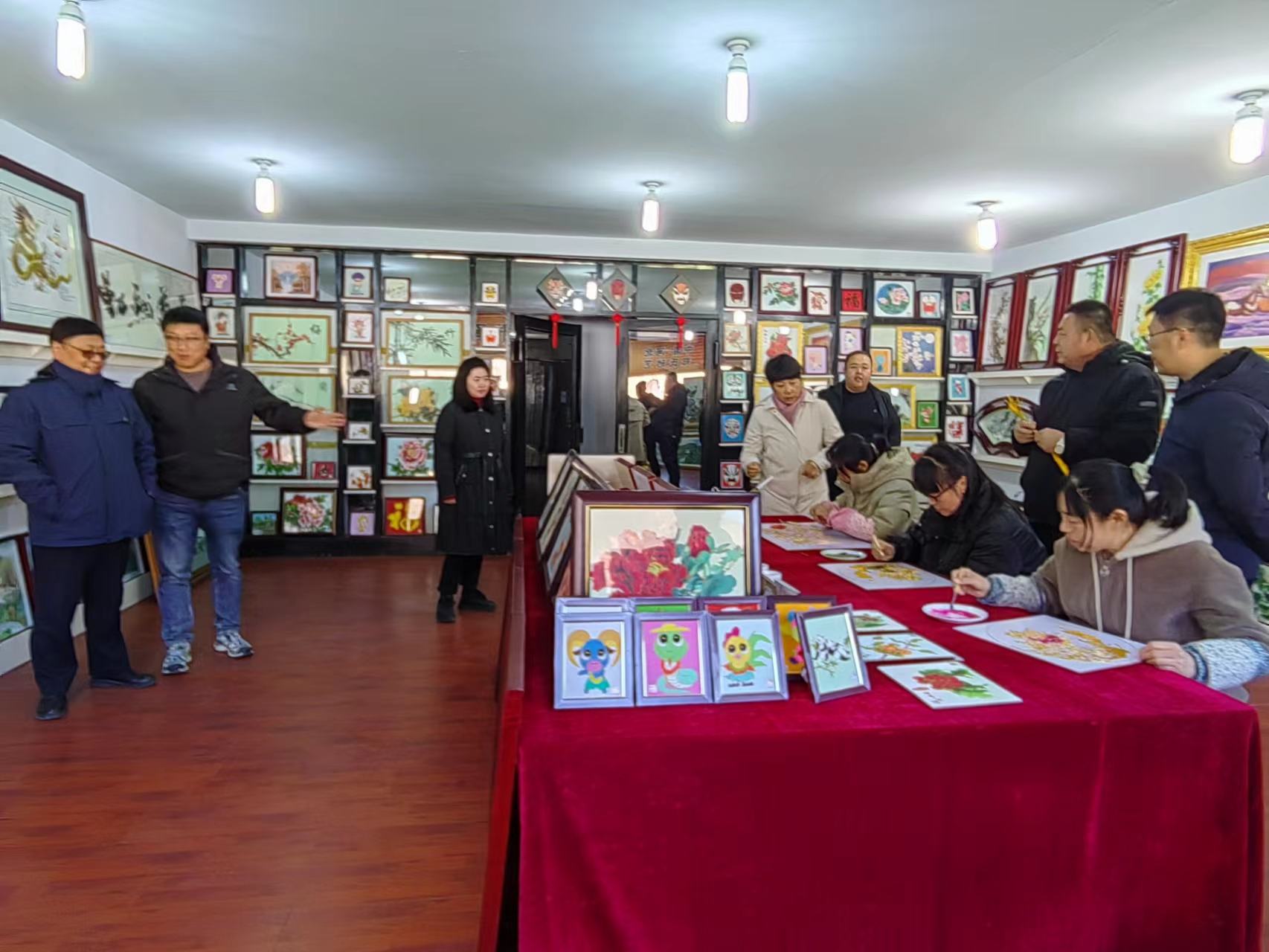 丁宇超副部長一行在鄭氏砂藝董事長鄭鐵軍的陪同下,逐一參觀了鄭氏砂藝展覽館和文化名家工作室,觀看了技師的砂畫制作手法,以及砂畫主要材質和制作步驟,對鄭氏砂藝傳統技藝頗為驚訝和感嘆,贊嘆一幅幅栩栩如生的砂畫作品,就是我們的畫師用一雙雙纖纖玉手這樣一點一點地制作完成的,簡直是妙手回春,點砂成金。