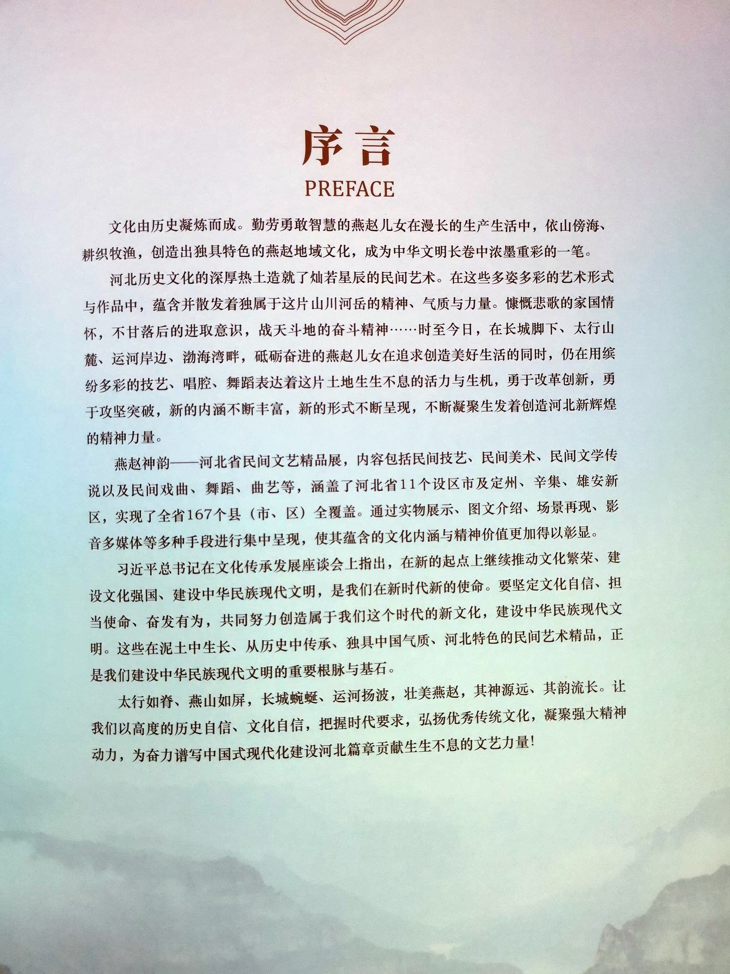 據(jù)悉,本次展覽為河北文藝家之家常設展覽,展出包含41名省級以上工藝大師在內(nèi)的共計115名民間文藝家的作品以及民間舞蹈、民間音樂、民間曲藝、民間戲曲、節(jié)日禮儀、民間諺語、民間故事、武術(shù)雜技等展示項目,首次實現(xiàn)了全省167個縣(市、區(qū))民間文藝瑰寶全覆蓋,達到“一縣一品”精準呈現(xiàn),并通過實物展示、圖文介紹、場景再現(xiàn)、影音多媒體等多種手段進行集中呈現(xiàn),使其蘊含的文化內(nèi)涵與精神價值更加得以彰顯。