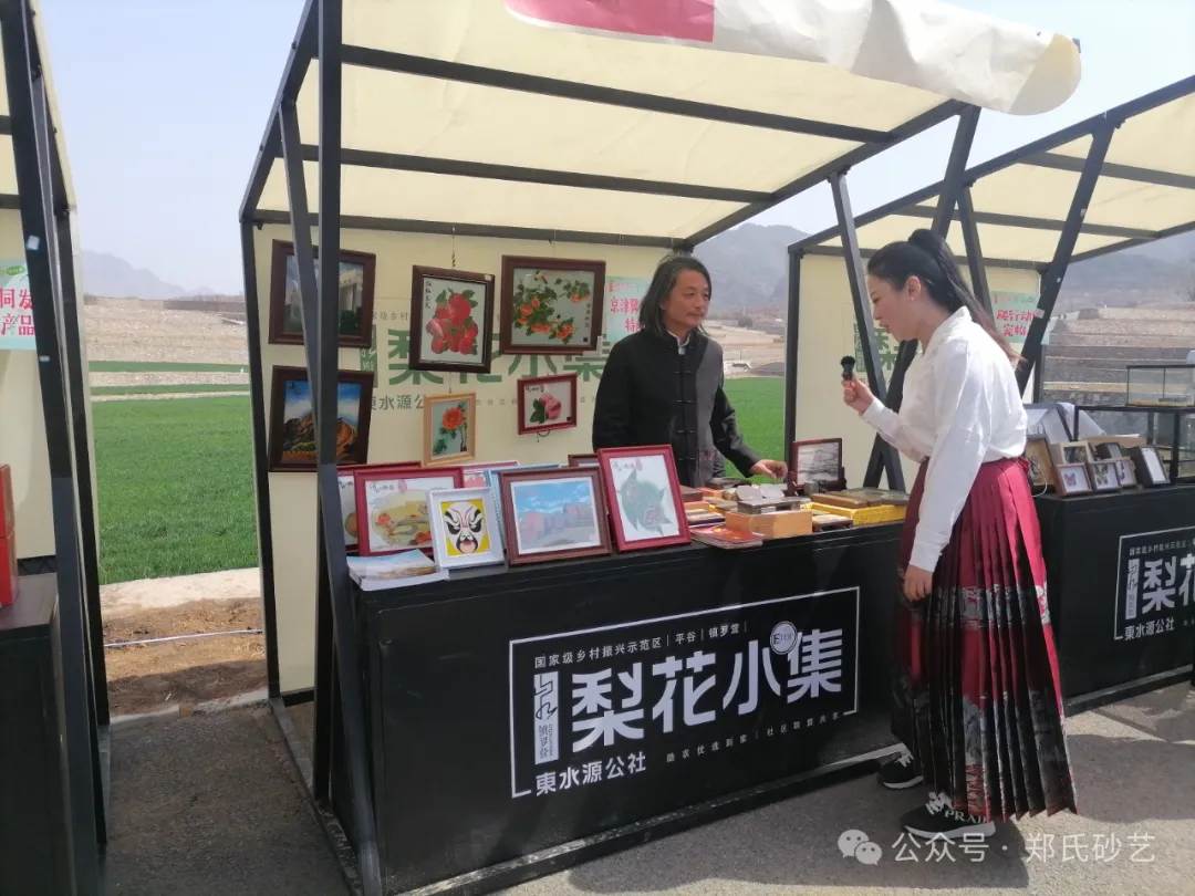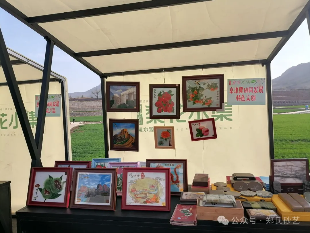 “忽如一夜春風(fēng)來(lái),千樹萬(wàn)樹梨花開(kāi)” 春風(fēng)正好,花開(kāi)有期。2024年4月8日上午,北京市平谷區(qū)鎮(zhèn)羅營(yíng)鎮(zhèn)人民政府舉辦的以“千載梨花頌、花漾鎮(zhèn)羅營(yíng)”為主題的梨花谷雨文化節(jié)活動(dòng)拉開(kāi)帷幕,為營(yíng)造“傳統(tǒng)文化+梨花美景”的活動(dòng)氛圍,鄭氏砂藝受邀參加了此次活動(dòng),并精心挑選了20余幅精品砂畫參加展出,展出作品涵蓋了紅火(山楂)、吉利(板栗)、平安(蘋果)、天文臺(tái)、興隆山風(fēng)光等興隆地區(qū)眾多的特色產(chǎn)品和獨(dú)特景點(diǎn),展出期間,鄭氏砂藝(畫)作品以其材質(zhì)的新穎獨(dú)特,制作手法的精妙絕倫,畫面內(nèi)容的豐富多彩,吸引了眾多游客駐足觀賞,成為了自媒體和游客的拍攝打卡地。鄭氏砂藝用自己的藝術(shù)方式充分地向北京人們展示了興隆的文化特色,同時(shí)為平谷“梨花節(jié)”增添了濃厚的文化氣息。