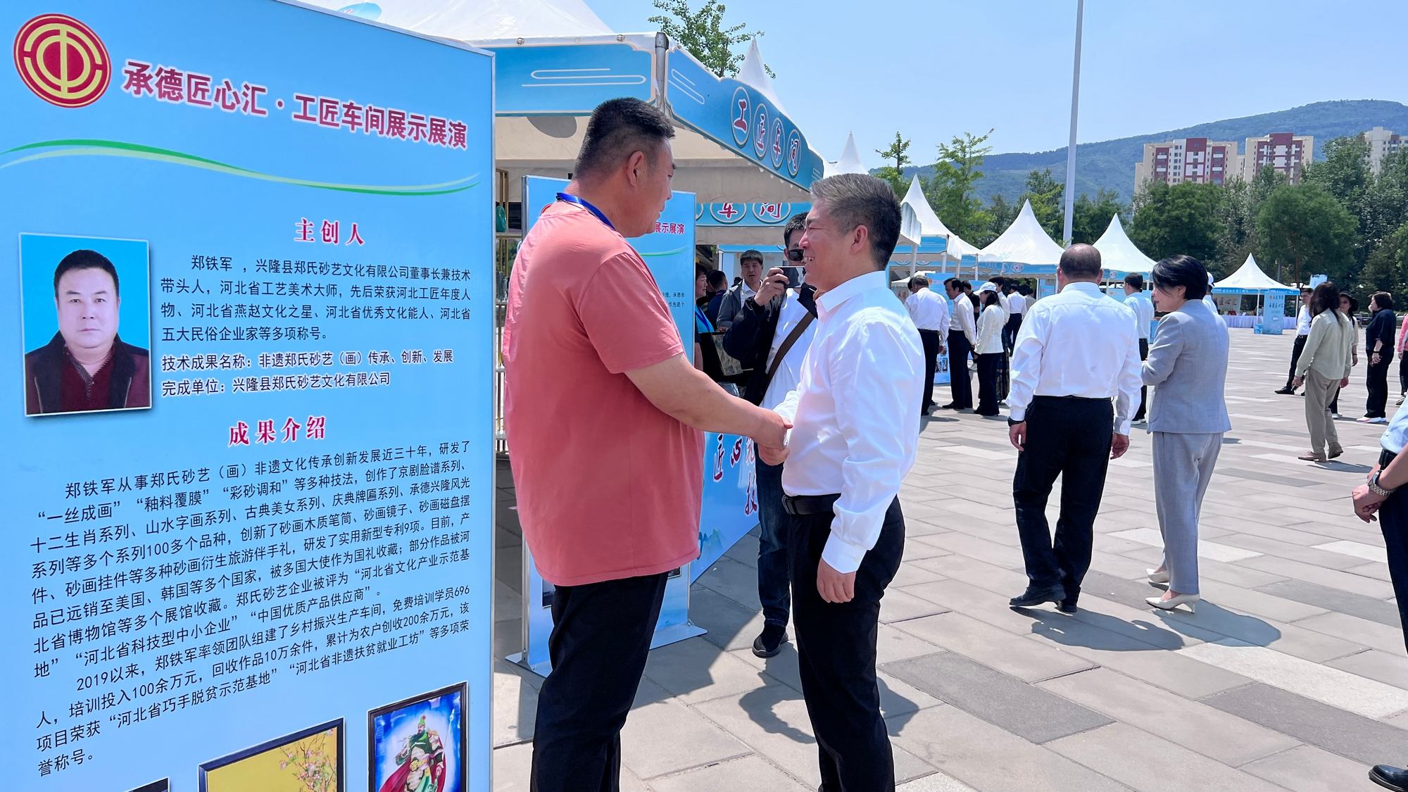 為向全國(guó)職工展示我省、我市工匠代表典型創(chuàng)新成果、精湛的操作技能,非遺傳承以及智慧文創(chuàng)的文化魅力,同時(shí)在奧體中心還舉辦了“承德匠心匯——工匠•市集”展示展演活動(dòng),鄭氏砂藝(畫(huà))等二十余個(gè)承德非遺文化項(xiàng)目的勞模工匠代表匯聚一堂,向全國(guó)職工和當(dāng)?shù)厥忻裾故玖俗陨淼母叱妓嚕宫F(xiàn)了承德工匠們堅(jiān)守執(zhí)著、精益求精、專(zhuān)業(yè)專(zhuān)注、追求極致和一絲不茍的工匠精神。