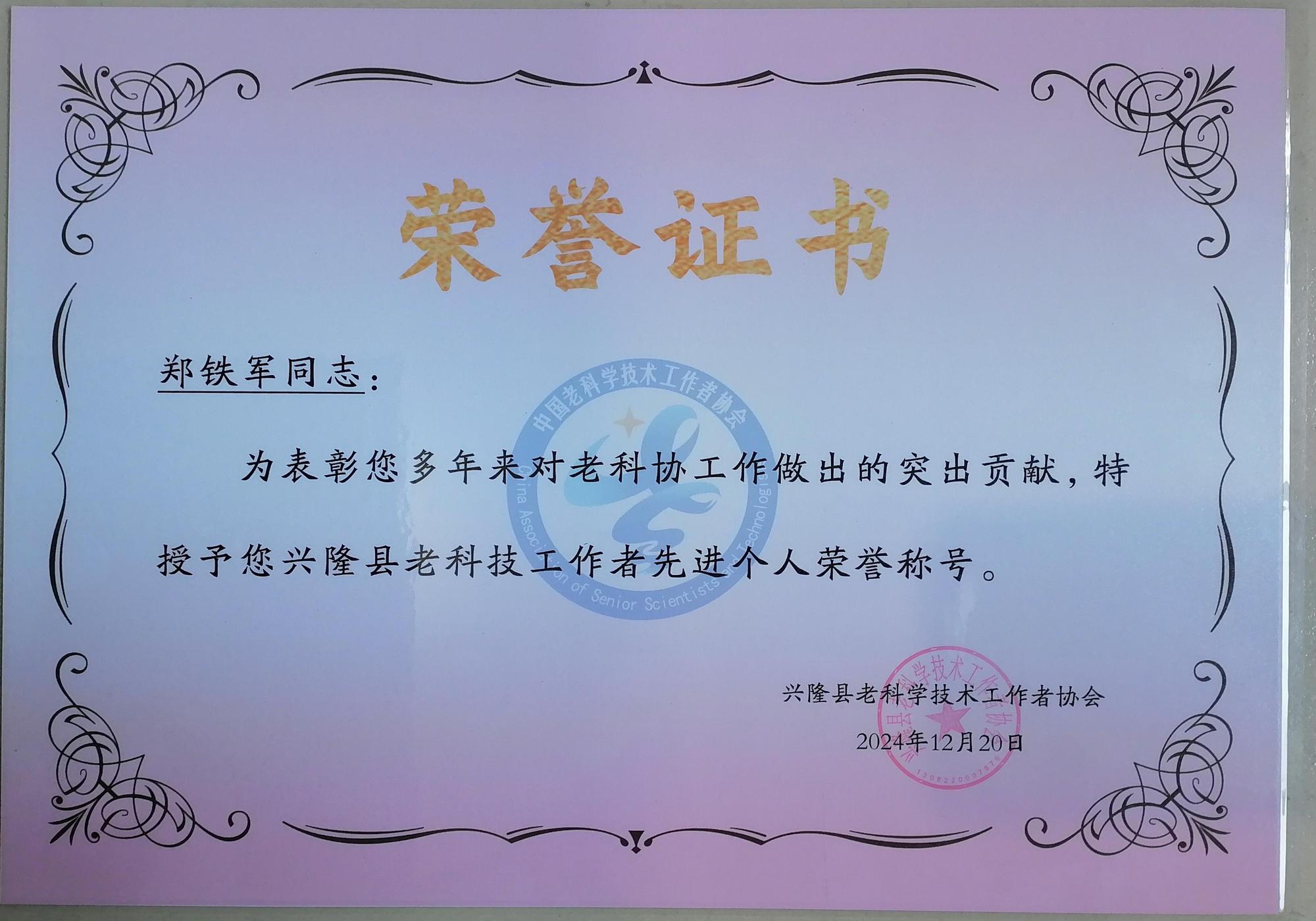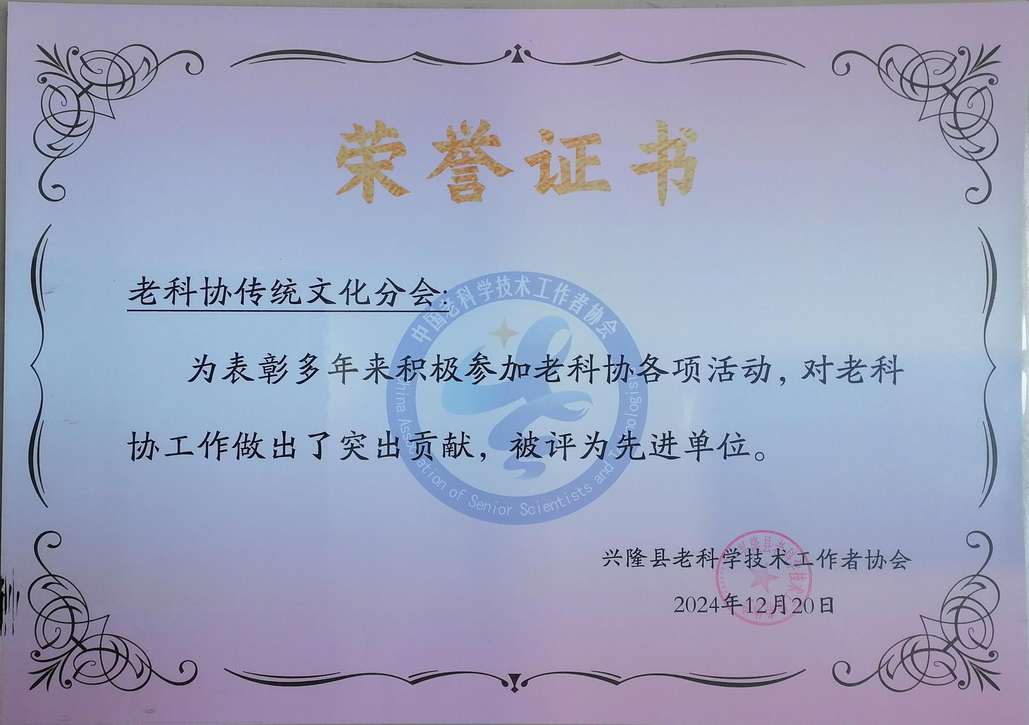 2024年12月20日上午,興隆縣老科協(xié)2024年度總結(jié)表彰大會(huì)及2025年迎新年聯(lián)歡會(huì),在縣老干部局一樓活動(dòng)中心隆重舉行。老干部局三級(jí)主任科員陸雅麗、縣老科協(xié)會(huì)長張江以及各分會(huì)的會(huì)長、副會(huì)長和全體100多名會(huì)員出席了此次盛會(huì)。在此次大會(huì)上,興隆縣老科協(xié)傳統(tǒng)文化分會(huì)榮獲先進(jìn)單位榮譽(yù)稱號(hào),老科協(xié)理事、傳統(tǒng)文化分會(huì)會(huì)長鄭鐵軍同志榮獲老科協(xié)先進(jìn)個(gè)人榮譽(yù)稱號(hào)。