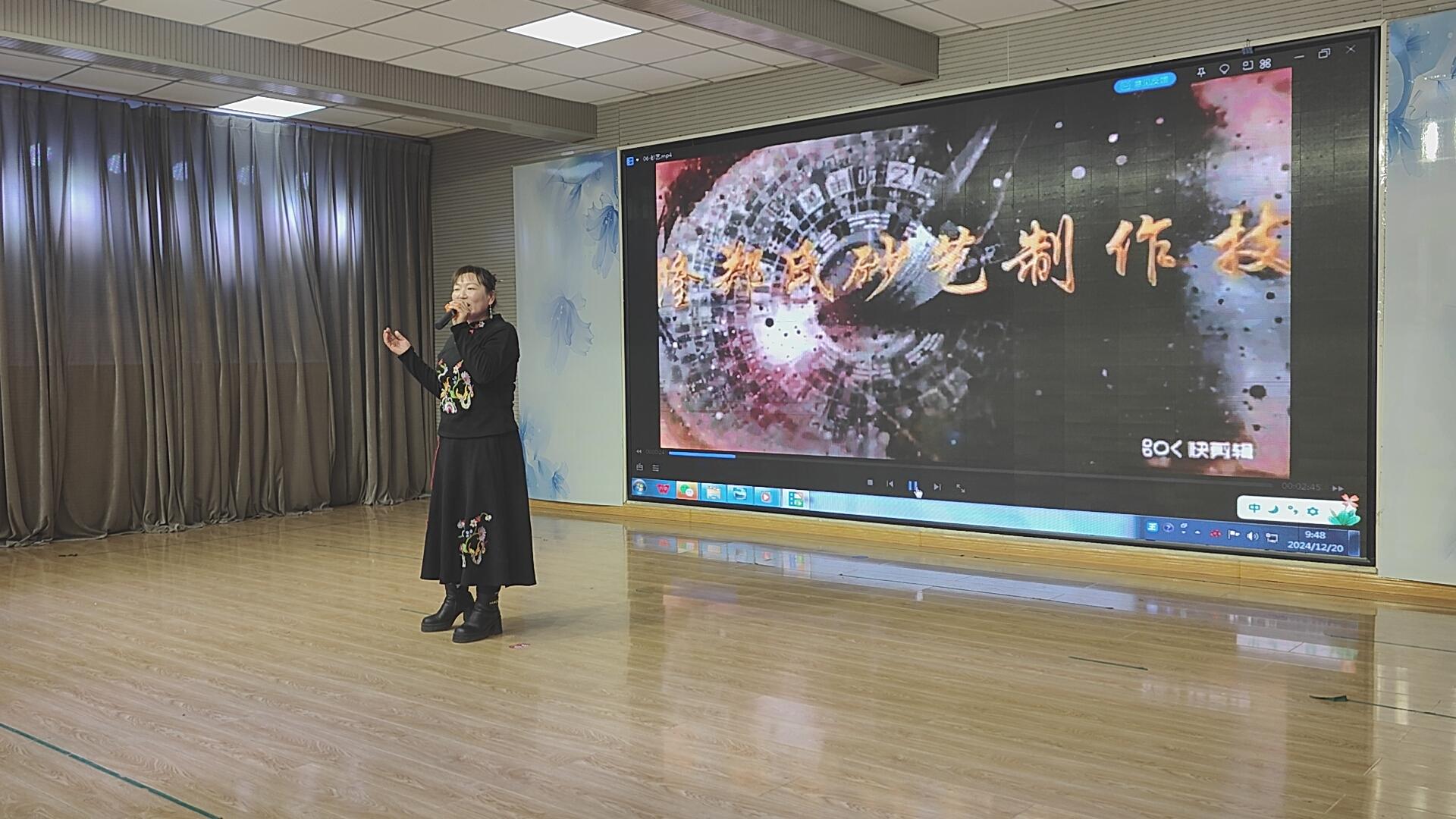 迎新聯(lián)歡會(huì)上,各分會(huì)帶來了豐富多彩的節(jié)目。其中傳統(tǒng)文化分會(huì)的副秘書長趙文紅深情演唱了《鄭氏砂藝之歌》,其優(yōu)美的旋律和動(dòng)聽的歌聲生動(dòng)展現(xiàn)了砂藝的精髓。同時(shí),大屏幕上播放的鄭氏砂藝技藝制作宣傳片,完美呈現(xiàn)了鄭氏砂藝這一傳統(tǒng)文化藝術(shù)的魅力。通過這樣的展示,傳統(tǒng)文化的魅力得以在老科協(xié)眾多藝術(shù)家面前展現(xiàn),為傳統(tǒng)文化的傳承與發(fā)展搭建了平臺(tái)。
