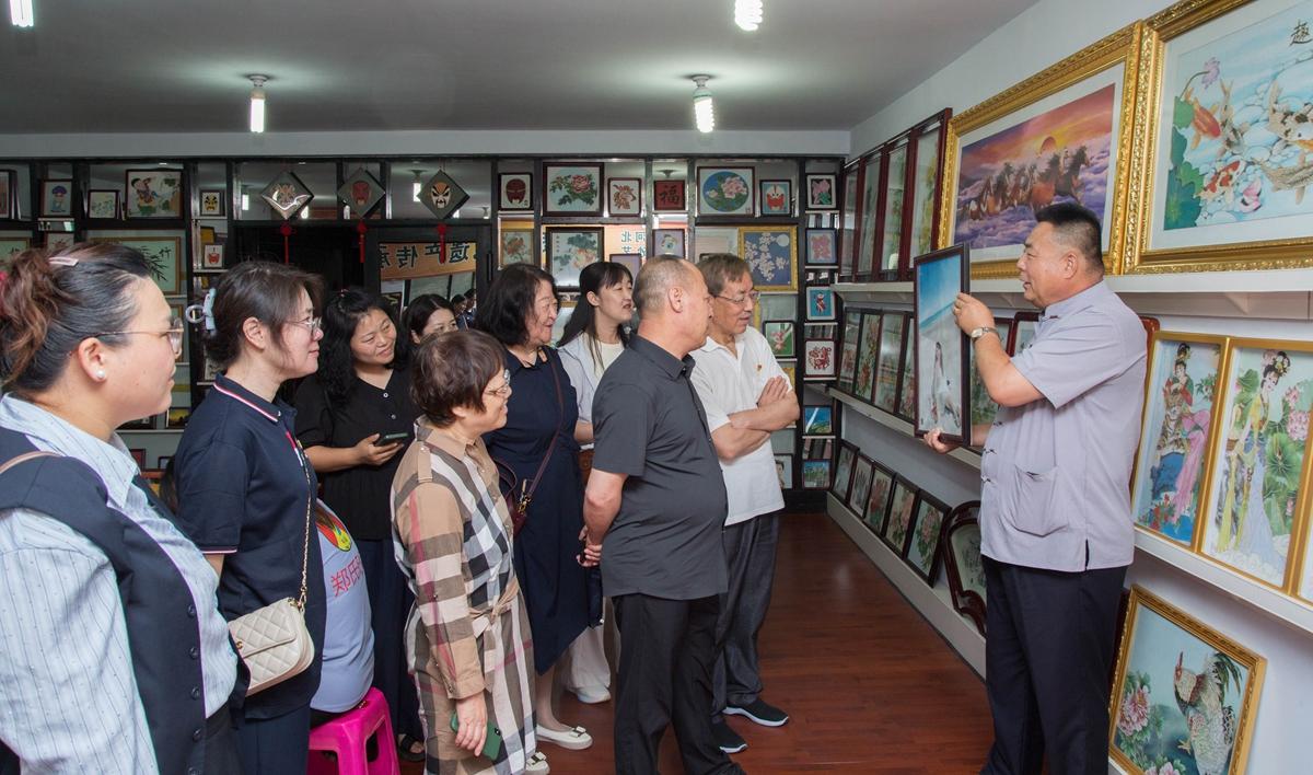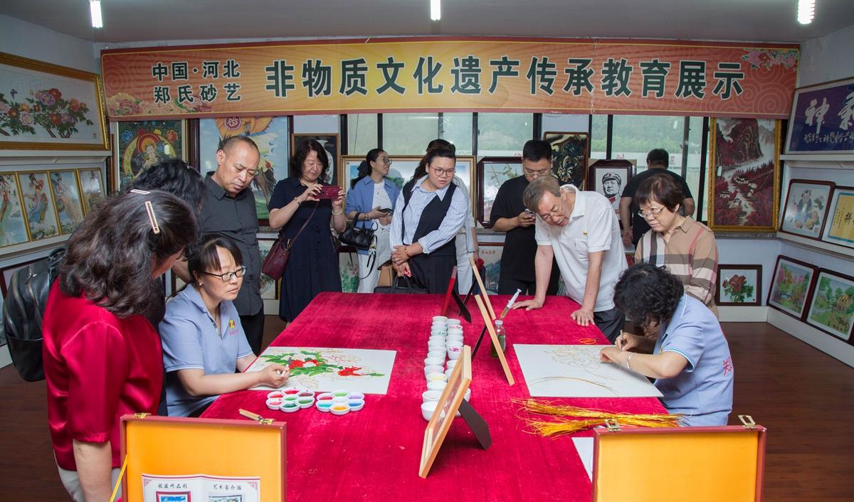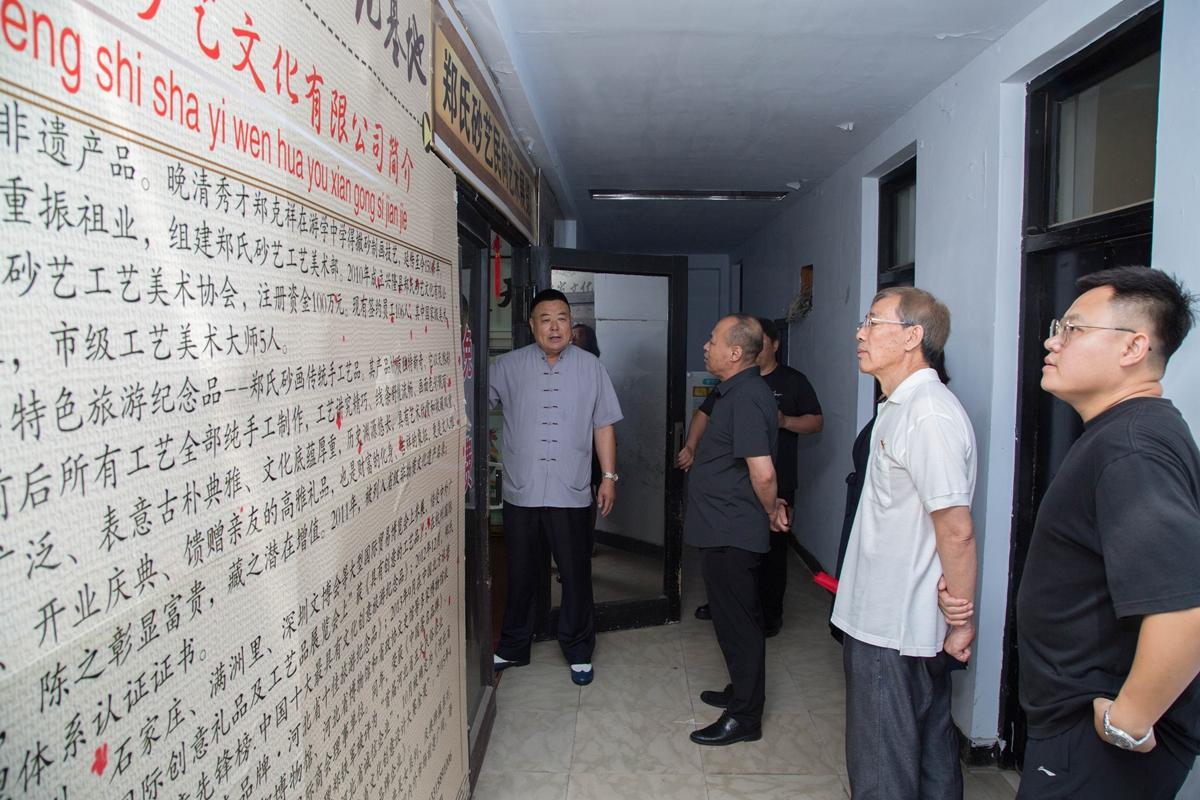 在鄭氏砂藝總經理鄭鐵軍的引領下,參觀人員先后參觀了鄭氏砂藝非遺傳承基地和創(chuàng)新研發(fā)車間等工作場所,鄭總詳細介紹了公司發(fā)展歷程、非遺傳承成果及黨建引領經驗,強調黨紀要求如何融入企業(yè)管理黨員參觀了公司展覽館,欣賞了各類砂畫作品,感受非遺魅力。