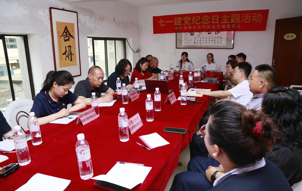 隨后,市信用協(xié)會黨支部開展了黨建交流環(huán)節(jié)。主持人王一然開場闡述建黨節(jié)意義及活動主題,鄭氏砂藝工會主席張國新分享企業(yè)發(fā)展成果。全體人員集中學習了2025年“七一”前夕中央重要會議精神,聚焦全面從嚴治黨、高質量發(fā)展和誠信建設。緊接著,承德市信用協(xié)會黨支部書記高燕領誓,全體黨員重溫入黨誓詞,莊嚴承諾“為共產主義奮斗終身”。理事單位代表逐一介紹自身情況,豐寧順達礦業(yè)集團副總經理武鳳寶、興隆縣工商聯(lián)秘書長丁小虎及信用協(xié)會顧問初海云分別發(fā)表講話。