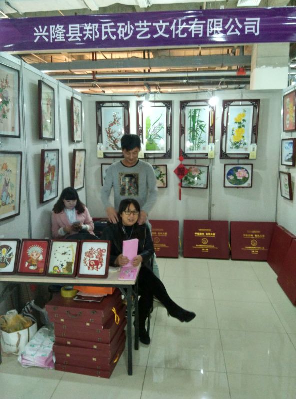 2015年10月16日--10月18日,興隆縣鄭氏砂藝文化有限公司參加了由河北省文化廳承辦的第四屆河北省特色文化產品博覽交易會,地點:石家莊樂城.國際貿易城,公司的砂畫產品在展會上受到廣大顧客的青睞。