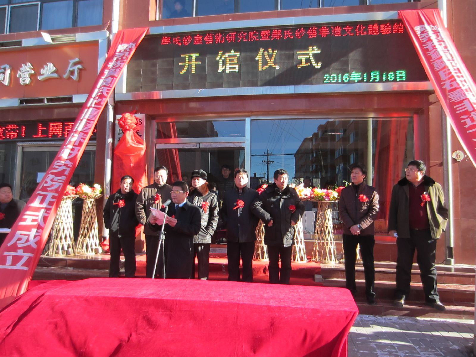 興隆縣文化體育和旅游局局長(zhǎng)鄧久國(guó)在鄭氏砂畫(huà)藝術(shù)研究院,鄭氏砂藝非遺文化體驗(yàn)館揭牌儀式上致詞