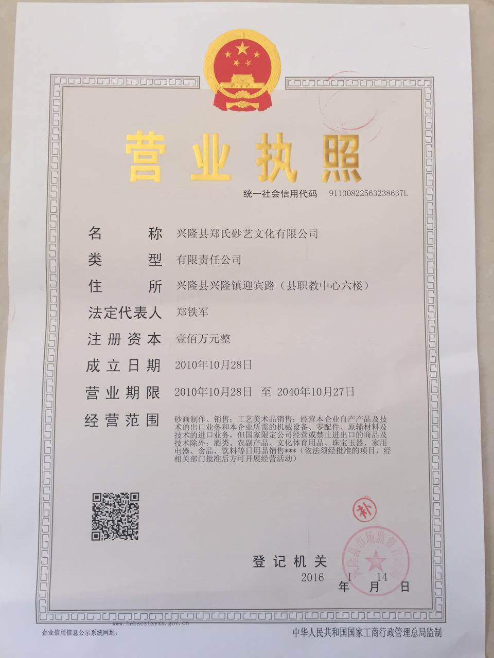 我司是外貿主導型企業,產品主要銷往歐美,日本,韓國等國家。近幾年,受金融危機影響,我公司正積極大力開拓國內市場,所生產手工砂畫作品制作精細,線條流暢,顏色靚麗,十分有檔次,現是饋贈禮品的最佳選擇,具有觀賞和收藏雙重價值??山邮芸蛻籼峁┑娜魏螆D案進行訂制。有誠意的客戶可以直接來電咨詢詳細情況。